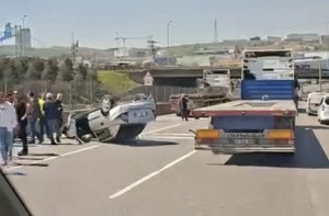 Körfez ile Derince arasında bulunan E-5 yan yolda, iki aracın birbirini sıkıştırması sonucu maddi hasarlı bir trafik kazası meydana geldi. Yaşanan o anlar, bölgedeki başka bir aracın kamerası tarafından saniye saniye kaydedildi.
